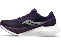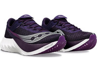 Make it to the finish line in a flash with the Saucony Endorphin Pro 4. Streamlined for race day, the Endorphin Pro 4 is built for speed. With updated cushioning, an improved race-ready upper and a new outsole design, your runs will feel faster than ever. The carbon plate and rocker geometry propel you forward in a flash to help you break those personal records. Details: - Upper: An improved race-ready design that has a smooth heel liner and integrated tongue. In our Saucony Endorphin Pro 4 review, Ashley said “The upper in the Pro 4 is light and airy. In some ways, it feels like I’m wearing a sock with a sole. And honestly, I can’t think of a better feeling for a fast workout and race-day shoe than that!” - Midsole: There is a new dual-cushioning system in the Endorphin Pro 4 that uses PWRRUN PB Pebax-based foam combined with PWRRUN HG foam which is Saucony’s most energy-efficient foam. The result is a shoe that is super lightweight, cushioned and energetic. Saucony combined these foams with their snappy SPEEDROLL technology that provides for fast, forward motion while the trusted carbon plate gives you a smooth turnover and more efficient strides. - Outsole: A new lattice-designed outsole provides for smooth runs and more traction on the road when you are racing at breakneck speeds.