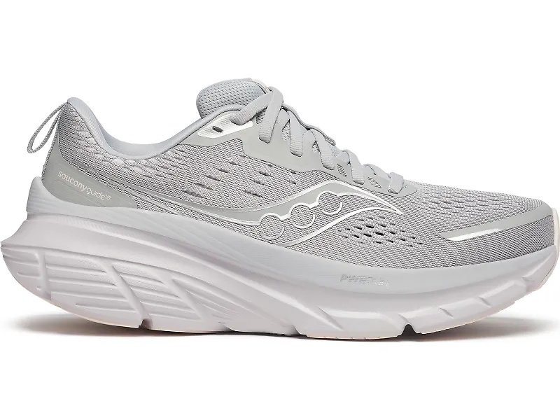 Step into the perfect blend of cushioning and stability with the Saucony Guide 18. For runners and walkers seeking a soft and supportive ride, the Guide 18 adapts seamlessly to your stride, providing a smooth, stable experience with every step. It works by combining Saucony’s soft and responsive PWRRUN foam with their Center Path Technology which keeps the foot centered and supported. “I like how the Guide 18 feels less bulky,” says Spencer in our full Saucony Guide 18 review. “Sometimes weight can be a tradeoff when adding more cushion, but this latest model seems lighter weight and more agile. Details: - Upper: An engineered mesh upper keeps the fit breathable and secure while leaving enough space to accommodate wider foot shapes if needed. A gusseted tongue helps to lock down your foot for a comfortable and distraction-free run. - Midsole: PWRRUN foam delivers soft yet responsive cushioning, striking the perfect balance for long-lasting comfort. Plus, Center Path Technology gives you smooth transitions and plenty of support thanks to the broader platform, higher sidewalls and asymmetric profile to guide your stride. - Outsole: The XT-900 carbon rubber outsole gives you durable traction made to last.