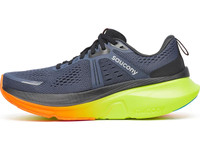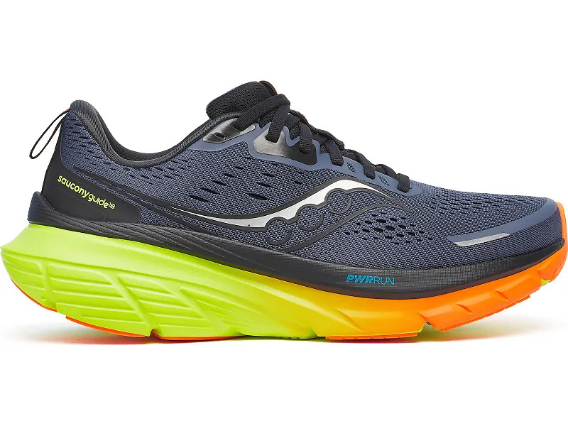 Step into the perfect blend of cushioning and stability with the Saucony Guide 18. For runners and walkers seeking a soft and supportive ride, the Guide 18 adapts seamlessly to your stride, providing a smooth, stable experience with every step. It works by combining Saucony’s soft and responsive PWRRUN foam with their Center Path Technology which keeps the foot centered and supported. “I like how the Guide 18 feels less bulky,” says Spencer in our full Saucony Guide 18 review. “Sometimes weight can be a tradeoff when adding more cushion, but this latest model seems lighter weight and more agile. Details: - Upper: An engineered mesh upper keeps the fit breathable and secure while leaving enough space to accommodate wider foot shapes if needed. A gusseted tongue helps to lock down your foot for a comfortable and distraction-free run. - Midsole: PWRRUN foam delivers soft yet responsive cushioning, striking the perfect balance for long-lasting comfort. Plus, Center Path Technology gives you smooth transitions and plenty of support thanks to the broader platform, higher sidewalls and asymmetric profile to guide your stride. - Outsole: The XT-900 carbon rubber outsole gives you durable traction made to last.