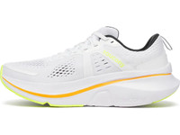 Step into the perfect blend of cushioning and stability with the Saucony Guide 18. For runners and walkers seeking a soft and supportive ride, the Guide 18 adapts seamlessly to your stride, providing a smooth, stable experience with every step. It works by combining Saucony’s soft and responsive PWRRUN foam with their Center Path Technology which keeps the foot centered and supported. “I like how the Guide 18 feels less bulky,” says Spencer in our full Saucony Guide 18 review. “Sometimes weight can be a tradeoff when adding more cushion, but this latest model seems lighter weight and more agile. Details: - Upper: An engineered mesh upper keeps the fit breathable and secure while leaving enough space to accommodate wider foot shapes if needed. A gusseted tongue helps to lock down your foot for a comfortable and distraction-free run. - Midsole: PWRRUN foam delivers soft yet responsive cushioning, striking the perfect balance for long-lasting comfort. Plus, Center Path Technology gives you smooth transitions and plenty of support thanks to the broader platform, higher sidewalls and asymmetric profile to guide your stride. - Outsole: The XT-900 carbon rubber outsole gives you durable traction made to last.