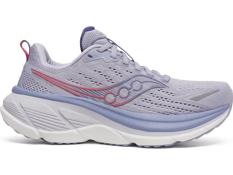 Experience smooth support that feels like floating in the Saucony Hurricane 25. Built for runners who want the perfect balance of cushioning and stability, the Hurricane 25 creates a supportive cradle for your feet without sacrificing the plush comfort you crave. Saucony's innovative dual-density midsole combines their durable PWRRUN foam with ultra-responsive PWRRUN PB cushioning, while Center Path Technology guides every step with confidence. In our Saucony Hurricane 25 review, run tester Kate said "The Hurricane balances support and softness while keeping me in a natural rhythm. Running in them feels both cushioned and fluid. That's a tough combination to get right." Details: - Upper: Soft, stretchy engineered mesh features strategic perforations for excellent breathability. The padded heel collar and tongue keep you secure, while a convenient pull-tab makes slip-on easy. Luxurious tubular laces add a premium touch to every run. - Midsole: The "maxed-out" platform creates a wide, stable base where your feet sit inside the cushioning rather than on top of it. PWRRUN foam frames the midsole for durability, while PWRRUN PB cushioning directly underfoot delivers responsive comfort with every step. - Outsole: Center Path Technology features high sidewalls, asymmetrical reinforcement on the medial side, and a rocker shape with beveled heel that guides you smoothly from landing to toe-off.