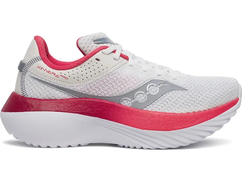 The Saucony Kinvara Pro is primed to be your carbon-plated running shoe for 99% of your runs. Not just race day. With cushioning for days and the comfort of your favorite daily trainer, the Kinvara Pro’s ride is as fun and addictive as bouncing on a trampoline. Unlike its race-day cousin, the Endorphin Pro, the Kinvara Pro is made to hold up to your runs day after day—and thanks to its gentle rolling sensation and ¾-length carbon plate that propels you forward effortlessly, building your running base never felt so easy. Read more about this carbon-plated daily trainer in our Saucony Kinvara Pro review. Features: - Upper: Engineered mesh upper - Midsole: dual cushioning system that starts with responsive and energy-efficient PWRRUN PB cushioning closest to the foot and a high stack of durable and comfortable PWRRUN cushioning underneath. Sandwiched in between these durable foams is a ¾-length carbon plate that helps to gently roll you forward.