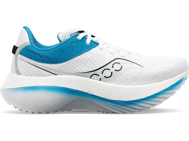 The Saucony Kinvara Pro is primed to be your carbon-plated running shoe for 99% of your runs. Not just race day. With cushioning for days and the comfort of your favorite daily trainer, the Kinvara Pro’s ride is as fun and addictive as bouncing on a trampoline. Unlike its race-day cousin, the Endorphin Pro, the Kinvara Pro is made to hold up to your runs day after day—and thanks to its gentle rolling sensation and ¾-length carbon plate that propels you forward effortlessly, building your running base never felt so easy. Read more about this carbon-plated daily trainer in our Saucony Kinvara Pro review. Features: - Upper: Engineered mesh upper - Midsole: dual cushioning system that starts with responsive and energy-efficient PWRRUN PB cushioning closest to the foot and a high stack of durable and comfortable PWRRUN cushioning underneath. Sandwiched in between these durable foams is a ¾-length carbon plate that helps to gently roll you forward.