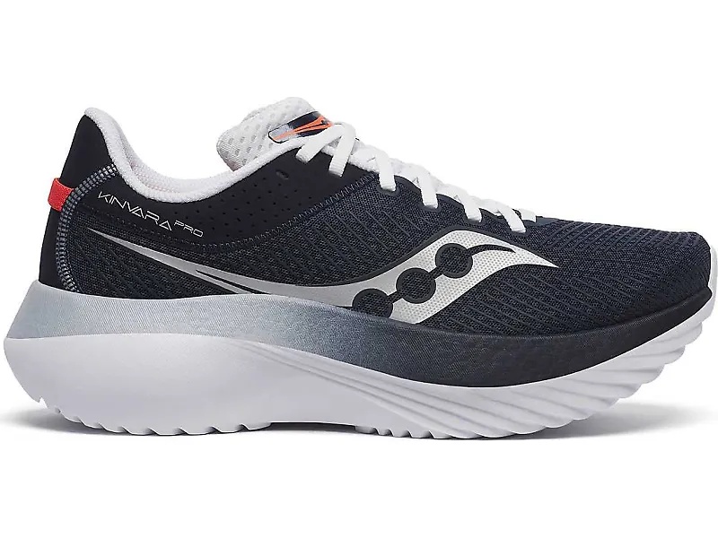 The Saucony Kinvara Pro is primed to be your carbon-plated running shoe for 99% of your runs. Not just race day. With cushioning for days and the comfort of your favorite daily trainer, the Kinvara Pro’s ride is as fun and addictive as bouncing on a trampoline. Unlike its race-day cousin, the Endorphin Pro, the Kinvara Pro is made to hold up to your runs day after day—and thanks to its gentle rolling sensation and ¾-length carbon plate that propels you forward effortlessly, building your running base never felt so easy. Read more about this carbon-plated daily trainer in our Saucony Kinvara Pro review. Features: - Upper: Engineered mesh upper - Midsole: dual cushioning system that starts with responsive and energy-efficient PWRRUN PB cushioning closest to the foot and a high stack of durable and comfortable PWRRUN cushioning underneath. Sandwiched in between these durable foams is a ¾-length carbon plate that helps to gently roll you forward.