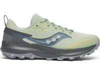 Any trail, any distance and in any weather—the Saucony Peregrine 14 GTX is your trusted trail shoe for going off-road. This shoe gives you the protection and grip you need to take on varying terrain so you can reach amazing sights and be surrounded by nature. The waterproof upper fits great, keeps the elements out and is breathable. So go to the summit of that mountain, run across that creek and enjoy being in the great outdoors with the Saucony Peregrine 14 GTX. Details - Upper: Debris-resistant construction is durable and sturdy to protect you from rocks and roots. The GORE-TEX® Invisible Fit construction acts as a waterproof shield, keeping your feet dry. The new construction is surprisingly breathable. A new tongue and adaptive eyelet configuration fit a variety of foot shapes comfortably. - Midsole: A softer blend of PWRRUN foam provides cushier landings on uneven terrain. - Outsole: A tacky PWRTRAC outsole with a versatile 5 mm lug design gives you rugged traction that you can trust on a variety of terrains.