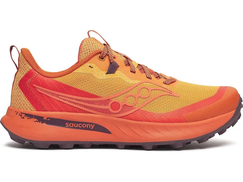 The Saucony Peregrine 15 will take you to the summit and back, no matter the terrain. Named after the fastest bird on earth, the lightweight and low-profile Peregrine 15 is designed to handle challenging trails with ease. With aggressive traction, enhanced cushioning and superior protection it delivers a nimble yet forgiving ride for any distance. Details: - Upper: The high-strength mesh upper is designed with reinforced protection in high-abrasion areas to shield you from roots and rocks, while the D-Ring gaiter compatibility keeps debris out on dusty or muddy trails. This durable construction offers a secure and adaptable fit for all-day comfort. - Midsole: A newly formulated PWRRUN foam midsole enhances cushioning, comfort and flexibility like never before. Whether you're tackling steep climbs or uneven descents, the responsive feel keeps your stride smooth and stable, offering the perfect balance of protection and agility. A forefoot rock guard adds an extra layer of defense, so you can focus on your run without distraction. - Outsole: A full-coverage PWRTRAC rubber outsole with aggressive 5 mm lugs gives you unparalleled durability and traction.