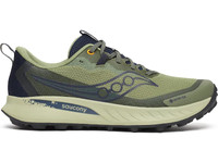 Any trail, any distance and in any weather—The Saucony Peregrine 15 GTX will take you to the summit and back. Named after the fastest bird on earth, the lightweight and low-profile Peregrine 15 GTX is designed to handle challenging trails with ease. With aggressive traction, enhanced cushioning and superior protection it delivers a nimble yet forgiving ride for any distance. Plus, the lightweight and breathable waterproof upper keeps your feet dry when rain starts falling. Details: - Upper: The high-strength mesh upper is designed with reinforced protection in high-abrasion areas to shield you from roots and rocks, while the D-Ring gaiter compatibility keeps debris out on dusty or muddy trails. The GORE-TEX® Invisible Fit construction acts as a waterproof shield, keeping your feet dry. - Midsole: A newly formulated PWRRUN foam midsole enhances cushioning, comfort and flexibility like never before. Whether you're tackling steep climbs or uneven descents, the responsive feel keeps your stride smooth and stable, offering the perfect balance of protection and agility. A forefoot rock guard adds an extra layer of defense, so you can focus on your run without distraction. - Outsole: A full-coverage PWRTRAC rubber outsole with aggressive 5 mm lugs gives you unparalleled durability and traction.
