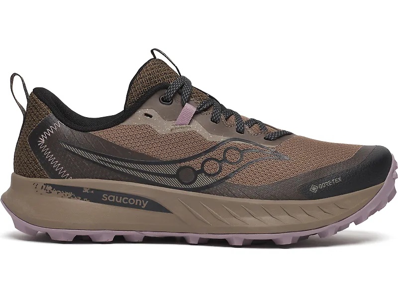 Any trail, any distance and in any weather—The Saucony Peregrine 15 GTX will take you to the summit and back. Named after the fastest bird on earth, the lightweight and low-profile Peregrine 15 GTX is designed to handle challenging trails with ease. With aggressive traction, enhanced cushioning and superior protection it delivers a nimble yet forgiving ride for any distance. Plus, the lightweight and breathable waterproof upper keeps your feet dry when rain starts falling. Details: - Upper: The high-strength mesh upper is designed with reinforced protection in high-abrasion areas to shield you from roots and rocks, while the D-Ring gaiter compatibility keeps debris out on dusty or muddy trails. The GORE-TEX® Invisible Fit construction acts as a waterproof shield, keeping your feet dry. - Midsole: A newly formulated PWRRUN foam midsole enhances cushioning, comfort and flexibility like never before. Whether you're tackling steep climbs or uneven descents, the responsive feel keeps your stride smooth and stable, offering the perfect balance of protection and agility. A forefoot rock guard adds an extra layer of defense, so you can focus on your run without distraction. - Outsole: A full-coverage PWRTRAC rubber outsole with aggressive 5 mm lugs gives you unparalleled durability and traction.