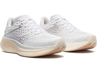 The Saucony Ride 17 has the cushioning you crave for everyday movement without sacrificing high energy return for your runs and workouts. This lightweight trainer blends comfort and performance seamlessly. Great for long runs or just walking around town, a generous stack of springy foam underfoot gives you a smooth ride that’s easier on your body. In fact, our reviewers noted how smooth the shoe transitions from walking to run and back again in our Saucony Ride 17 review. Details: - Upper: An engineered mesh design gives you more breathability across the toes, an improved midfoot wrap and locked-down comfort in the heel—so your feet will stay comfortable and cool no matter how long you’re on the move. - Midsole: Upgraded with Saucony’s advanced PWRRUN+ cushioning, the new midsole design reduces weight and improves energy return for an exciting, yet forgiving ride. - Outsole: Durable underfoot in high-wear areas, the outsole was crafted to improve ground contact and keep up with your daily mileage.