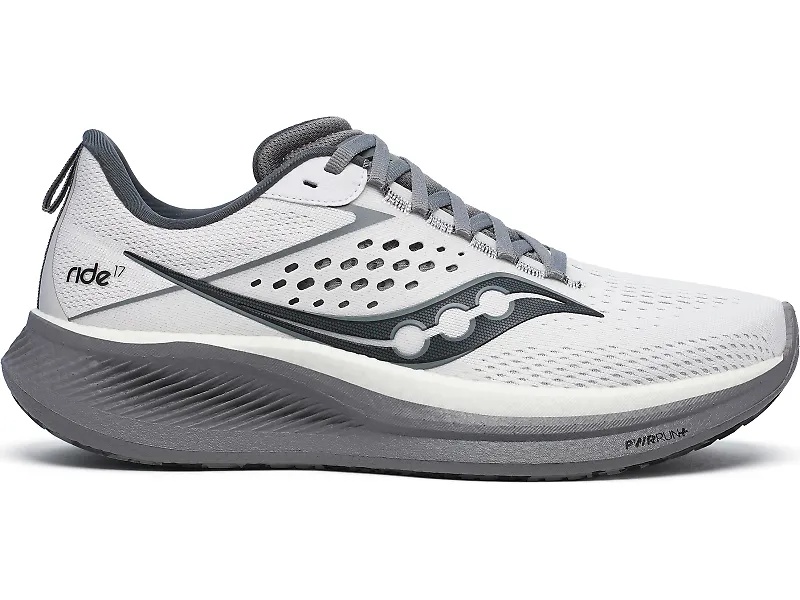 The Saucony Ride 17 has the cushioning you crave for everyday movement without sacrificing high energy return for your runs and workouts. This lightweight trainer blends comfort and performance seamlessly. Great for long runs or just walking around town, a generous stack of springy foam underfoot gives you a smooth ride that’s easier on your body. In fact, our reviewers noted how smooth the shoe transitions from walking to run and back again in our Saucony Ride 17 review. Details: - Upper: An engineered mesh design gives you more breathability across the toes, an improved midfoot wrap and locked-down comfort in the heel—so your feet will stay comfortable and cool no matter how long you’re on the move. - Midsole: Upgraded with Saucony’s advanced PWRRUN+ cushioning, the new midsole design reduces weight and improves energy return for an exciting, yet forgiving ride. - Outsole: Durable underfoot in high-wear areas, the outsole was crafted to improve ground contact and keep up with your daily mileage.
