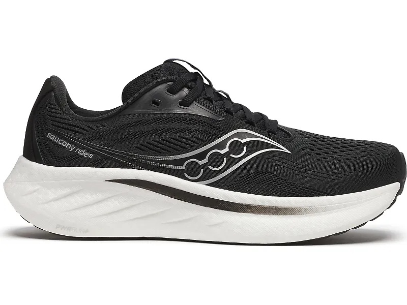 The Saucony Ride 18 blends comfort and performance seamlessly. With its streamlined design and dependable cushioning, this lightweight shoe is the ultimate training partner for runners seeking a smooth, balanced ride without unnecessary frills. In our Saucony Ride 18 review, reviewers loved the premium feel and plush fit of the upper. “I was really blown away by the upper. It’s the same engineered mesh material as the previous version, but small details give it an extra luxurious feeling,” says Caroline. Whether you’re logging easy miles or chasing new goals, the Saucony Ride 18 keeps you moving forward in comfort. Details: - Upper: The engineered mesh upper provides a breathable and secure fit, adapting to various foot shapes. A padded heel collar and tongue enhance comfort, ensuring a snug feel without unnecessary bulk. - Midsole: Equipped with Saucony's PWRRUN+ midsole, the Ride 18 delivers a responsive yet forgiving experience. This balanced cushioning supports both long-distance runs and uptempo workouts, offering versatility for different training sessions. - Outsole: The durable rubber outsole features a refined tread pattern, enhancing traction and promoting smooth transitions from heel to toe.
