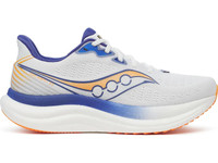 The Saucony Triumph 23 delivers plush comfort, reliable cushioning and smooth performance mile after mile. This premium cushioned shoe features softer PWRRUN PB foam that creates the perfect balance of softness and durability for your daily miles. In our review of the Saucony Triumph 23, run tester Max said, "The PWRRUN PB foam is soft, which is what I want in a high-cushion shoe built for daily miles and long runs, but it's also surprisingly energetic. It provides some pep in my step, even during longer runs." Combined with Saucony's innovative Super Responsive Sockliner that adds another layer of underfoot comfort, the Triumph 23 will be your go-to for easy runs, recovery days and those important training miles that build the foundation for your bigger goals. Details: - Upper: Thick, cushy padding wraps your foot in luxurious comfort without adding weight. The engineered mesh upper gives you a roomy fit that accommodates different foot shapes while the tubular laces and extra eyelet let you customize the lockdown exactly how you need it. - Midsole: A PWRRUN PB blend uses super-critically foamed ePEBA material that's softer than previous versions, delivering plush cushioning that still feels responsive. Plus, the Super Responsive Sockliner adds an extra layer of foam underfoot for a gloriously comfortable ride. - Outsole: A redesigned carbon-rubber outsole creates more flexibility in the midfoot for smoother transitions, while maintaining the durability you need for logging serious mileage.