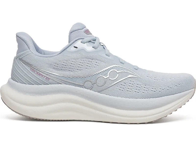 The Saucony Triumph 23 delivers plush comfort, reliable cushioning and smooth performance mile after mile. This premium cushioned shoe features softer PWRRUN PB foam that creates the perfect balance of softness and durability for your daily miles. In our review of the Saucony Triumph 23, run tester Max said, "The PWRRUN PB foam is soft, which is what I want in a high-cushion shoe built for daily miles and long runs, but it's also surprisingly energetic. It provides some pep in my step, even during longer runs." Combined with Saucony's innovative Super Responsive Sockliner that adds another layer of underfoot comfort, the Triumph 23 will be your go-to for easy runs, recovery days and those important training miles that build the foundation for your bigger goals. Details: - Upper: Thick, cushy padding wraps your foot in luxurious comfort without adding weight. The engineered mesh upper gives you a roomy fit that accommodates different foot shapes while the tubular laces and extra eyelet let you customize the lockdown exactly how you need it. - Midsole: A PWRRUN PB blend uses super-critically foamed ePEBA material that's softer than previous versions, delivering plush cushioning that still feels responsive. Plus, the Super Responsive Sockliner adds an extra layer of foam underfoot for a gloriously comfortable ride. - Outsole: A redesigned carbon-rubber outsole creates more flexibility in the midfoot for smoother transitions, while maintaining the durability you need for logging serious mileage.