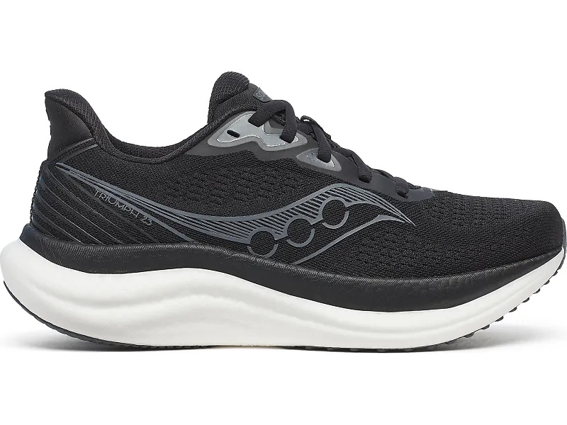 The Saucony Triumph 23 delivers plush comfort, reliable cushioning and smooth performance mile after mile. This premium cushioned shoe features softer PWRRUN PB foam that creates the perfect balance of softness and durability for your daily miles. In our review of the Saucony Triumph 23, run tester Max said, "The PWRRUN PB foam is soft, which is what I want in a high-cushion shoe built for daily miles and long runs, but it's also surprisingly energetic. It provides some pep in my step, even during longer runs." Combined with Saucony's innovative Super Responsive Sockliner that adds another layer of underfoot comfort, the Triumph 23 will be your go-to for easy runs, recovery days and those important training miles that build the foundation for your bigger goals. Details: - Upper: Thick, cushy padding wraps your foot in luxurious comfort without adding weight. The engineered mesh upper gives you a roomy fit that accommodates different foot shapes while the tubular laces and extra eyelet let you customize the lockdown exactly how you need it. - Midsole: A PWRRUN PB blend uses super-critically foamed ePEBA material that's softer than previous versions, delivering plush cushioning that still feels responsive. Plus, the Super Responsive Sockliner adds an extra layer of foam underfoot for a gloriously comfortable ride. - Outsole: A redesigned carbon-rubber outsole creates more flexibility in the midfoot for smoother transitions, while maintaining the durability you need for logging serious mileage.