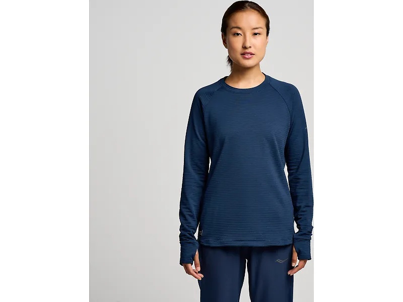 The big run. The grocery run. The wishing-you-didn't-wait-so-long-to-leave-the house run. Whatever the run, the Saucony Triumph 3D Crew is here to help you do it with next-level comfort. Get obsessed with the seriously soft stretchiness and quick-drying technology used across the ultra versatile pieces, made to be mixed and matched with ease. Details: - Active fit - Interior jacquard knit is soft and pulls moisture to the outside of the garment - Thumbhole cuffs - Reflective logos - Primary material: 171g/m2 93% Recycled Polyester / 7% Spandex