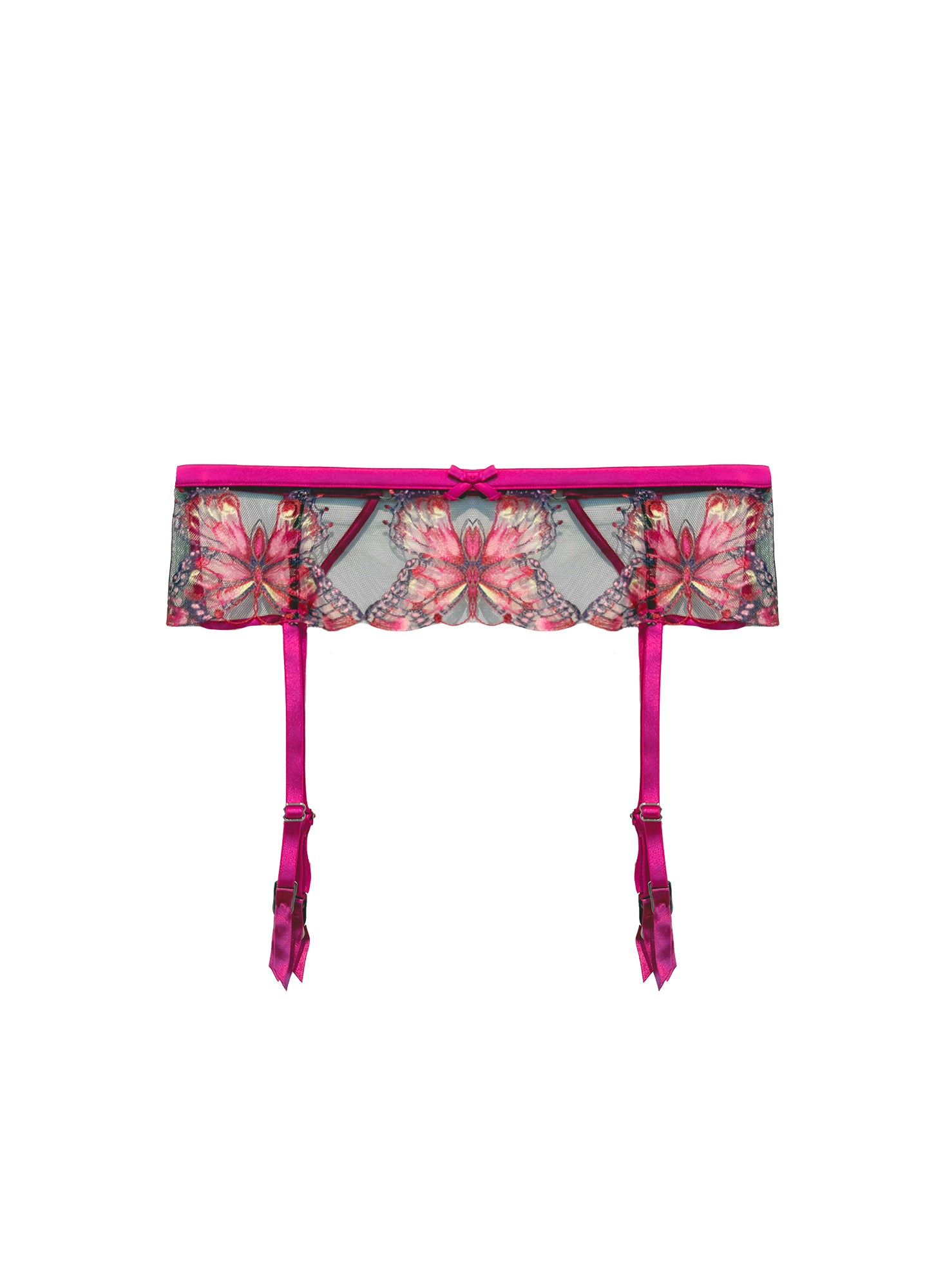 Our Butterfly Embroidery Garter Belt is the perfect addition to amp up your lingerie set. Features custom butterfly embroidery with luxe silk trim. Adjustable straps with center back closure. Complete this stunning set with the matching Butterfly Embroidery Balconette Bra and Cheeky. Materials & Care - Body: 100% Polyamide - Combo: 92% Silk & 8% Elastane - Hand wash cold, hang or lay flat to dry - SKU: GR0054-1070-001 Size & Fit - Model is wearing a size 2, the equivalent to size Small.
