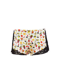Get in bed in our cheeky Charlotte Lace Tap Short, illustrated with hand drawn Italian inspired motif. Features comfortable shirred elastic waistband with contrast lace trim. Pair with the matching Charlotte Lace Cami for a set that's good enough to eat. Materials & Care - Body: 92% Silk & 8% Elastane - Combo: 88% Polyamide & 12% Elastane - Dry clean or hand wash & lay flat to dry - SKU: SH0014-0898 Size & Fit - Model is 5'11 and wearing a size Small.