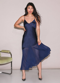 Our chic Chiffon & Satin Slip, featuring sexy sheer silk chiffon skirt to give a peek at what's underneath. Asymmetric silk charmeuse middle panel with flirty front pocket adds coverage. Adjustable straps, hits at the ankle. Take it from happy hour to after hours with you favorite Essentials panty. Materials & Care - Body: 100% Polyester - Combo: 92% Silk & 8% Elastane - Combo 2: 100% Silk - Dry clean - SKU: SL0115-0419 Size & Fit - Model is 5'9 and wearing a size S.