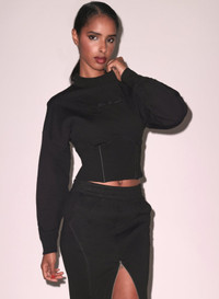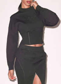 Our French cotton terry Corset Jumper, featuring flattering fitted ribbed waist with silk boning at princess seams. Mock neck and logo script detail. Take it out with the matching Unzip Me Maxi Skirt. Materials & Care - Body: 100% Cotton - Combo 1: 97% Cotton & 3% Spandex - Combo 2: 100% Silk - Dry clean, or hand wash in cold & lay flat to dry - SKU: TP0608-0100 Size & Fit - Model is 5'9 and wearing a size S.