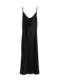 Back in black. Our silk Cowl Neck Slip Dress now in black features flattering bias cut silk charmeuse which hugs every curve. Falls just below the knee, adjustable straps. Layer over your favorite Essentials panty for a look that's perfectly chic from the party to the bedroom. Materials & Care - 100% Silk - Dry clean only - SKU: SL0026-0100 Size & Fit - Model is 5'8 and wearing a size S.