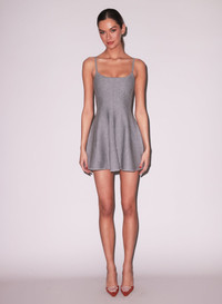 Go from brunch to bar in our flirty Flared Corset Dress. Features low cut square neckline and adjustable straps with scalloped detail. Cut from soft stretch jacquard with corset seaming to show off your waist. Exposed back zipper closure and playful flare skirt. Fitted style, mini length. Layer over your favorite Essentials Panty for a seamless look. Materials & Care - Body: 72% Viscose & 28% Polyester - Dry clean, or hand wash cold & lay flat to dry - SKU: DR0446-0339 Size & Fit - Model is 5'11 and wearing a size S. - Size Small measures 24.25" from neckline to hem.