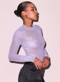 Our Lace Pointelle Long Sleeve Bodysuit, cut from soft stretch knit with pointelle detailing. Features mock neck and raglan long sleeves with thong cut back and bottom snap closure. Take it out layered over the Molded Luxe Triangle Bra and Luxe Thong. Materials & Care - Body: 77% Rayon & 23% Viscose - Hand wash cold separately & lay flat to dry - SKU: BS0458-0957 Size & Fit - Model is wearing a size Small.