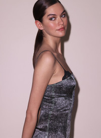 Our ultra chic Margaux Maxi Dress, cut from luxe silk charmeuse with peekaboo lace trim and top stitch detailing. Features adjustable straps and front slit. Invisible side zup closure. Take it from happy hour to after hours with your favorite Essentials panty. Materials & Care - Body: 92% Silk & 8% Elastane - Combo 1: 84% Nylon & 16% Elastane - Combo 2: 100% Polyester - Dry clean only - SKU: DR0534-0888 Size & Fit - Model is 5'11 and wearing a size 4.