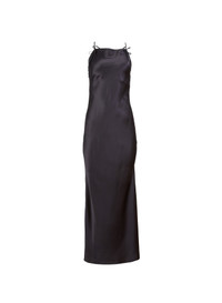 Our ultra chic Open Back Maxi Slip Dress, cut from luxe silk charmeuse with grommet and bow detail at neckline. Features adjustable straps and sexy lowcut back. Invisible zip closure. Take it from happy hour to after hours with your favorite Essentials panty. Materials & Care - Body: 100% Silk - Lace: 49% Polyamide, 28% Cotton & 23% Lyocell - Dry clean only. - SKU: DR0624-0100 Size & Fit - Model is 5'11 and wearing a size Small.