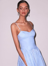 Our lightweight cotton Poplin Cupped Midi Dress, featuring corset inspired underbust & garter seaming details with adjustable straps and invisible zip closure. Flirty full volume skirt with higher cut hemline at sides. We love it layered over the matching Poplin Lace Cheeky. Materials & Care - Body: 76% Cotton, 21% Polyamide & 3% Elastane - Combo: 80% Polyamide, 16% Cotton & 4% Elastane - Do not iron or bleach - SKU: DR0613-1006 Size & Fit - Model is 5'11 and wearing a size S. - Dress measures 33 1/4” at center front and 19 1/2” at the side seam for a size small.