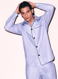 Our Poplin PJ Top made from lightweight European cotton with silk contrast piping, front button closure, and pocket detail. A relaxed fit. Complete the set with the matching Poplin PJ Pants and Poplin Robe. Materials & Care - Body: 100% Cotton - Combo: 92% Silk & 8% Elastane - Dry clean - Machine wash cold with similar colors, tumble dry low cool. Iron if needed. - Do not bleach - SKU: TP0667-1004-0XXS Size & Fit - Model is 6'1 and wearing a size Medium.