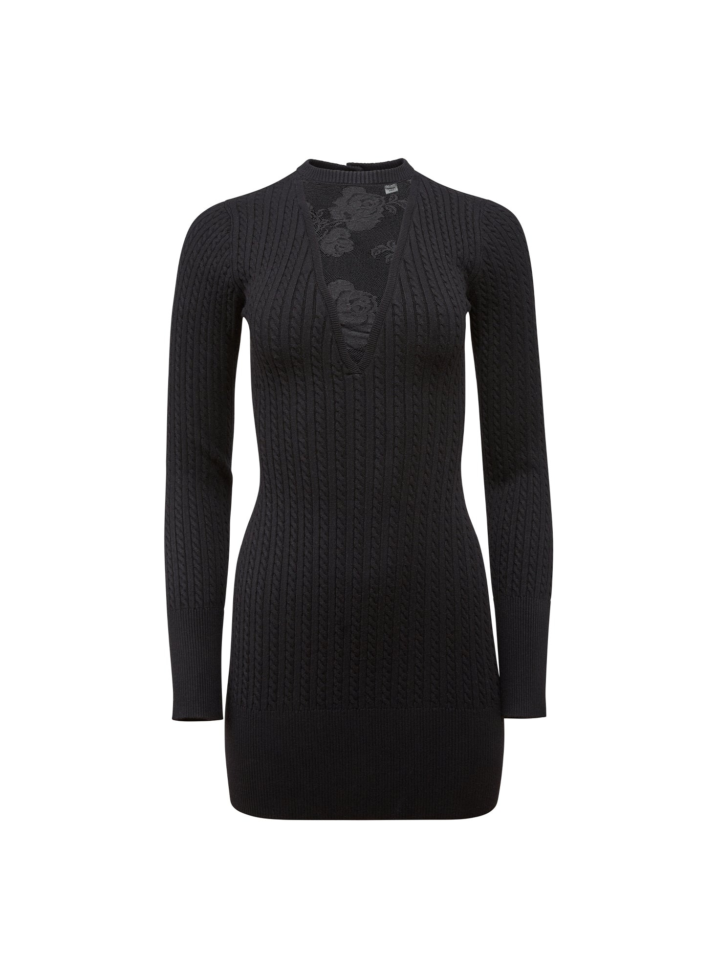 Our Quinn Mini Dress, soft-stretch ribbed knit with front lace insert. Mini length, pullover style. Take it from happy hour to after hours with your favorite Essentials panty. Materials & Care - Body: 72% Viscose & 28% Polyester - Combo: 49% Polyamide, 28% Cotton & 23% Lyocell - Dry clean or hand wash cold & lay flat to dry. - SKU: DR0678-0100 Size & Fit - Model is 5'11 and wearing a size Small. - Highest point seam to hem measures approx 32” in length.