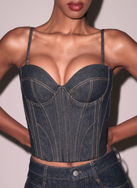 Our chic, body-shaping Denim Bustier Top, with washed denim paneling and top stitch detailing. Features structured cups for lift with adjustable straps. Sexy exposed back zipper detail. Take it from brunch to bar with the matching Denim Flare Pant. - Body: 100% Cotton - Lining: 65% Cotton, & 32% Polyamide, 3% Elastane - Machine wash cold with like colors, tumble dry low - Model is a 34B and wearing a size 4. Materials & Care - Body: 100% Cotton - Lining: 65% Cotton, & 32% Polyamide, 3% Elastane - Machine wash cold with like colors, tumble dry low - SKU: TP0527-0943 Size & Fit - Model is a 34B and wearing a size 4.
