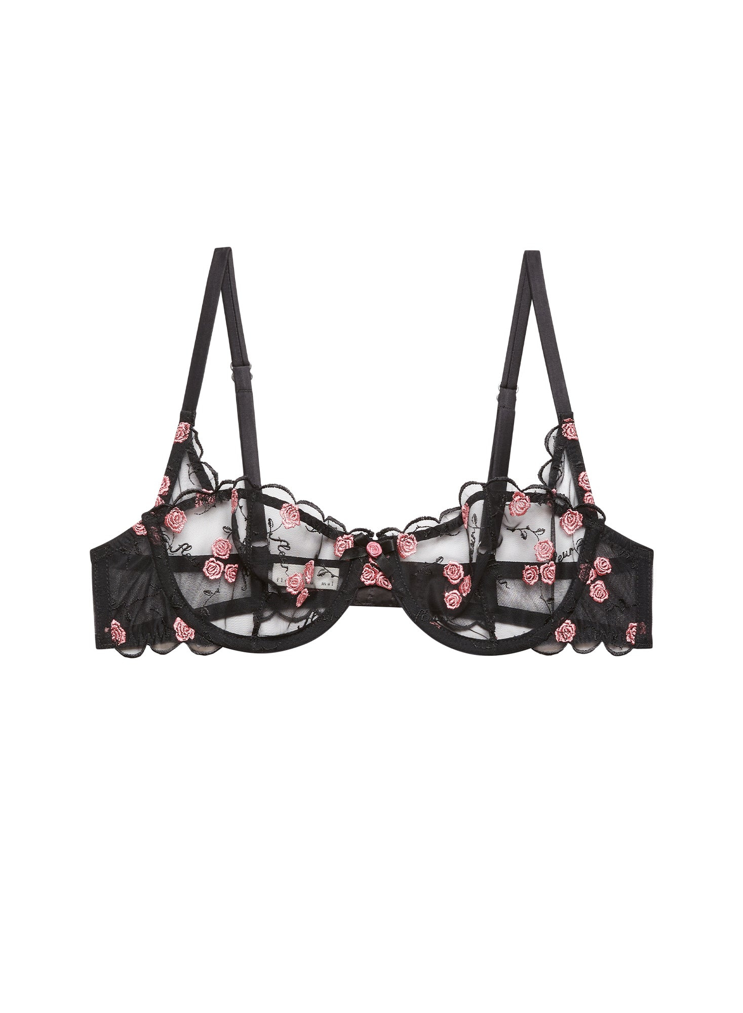 Our Roses & Vine Embroidery Balconette, featuring custom rose embroidery with Fleur logo script on sheer tulle. Ultra flirty scalloped cups with silk rosette bow detail & adjustable silk covered straps for the perfect fit. Complete this romantic set with the matching Rose & Vine Embroidery Thong and Garter. Materials & Care - Lace: 100% Polyamide - Embroidery: 100% Polyester - Mesh: 91% Polyamide & 9% Elastane - Combo: 95% Silk & 5% Elastane - Hand wash cold, lay flat to dry. Do not soak. - SKU: BR0424-0100-32A Size & Fit - Model is wearing a size 34B.