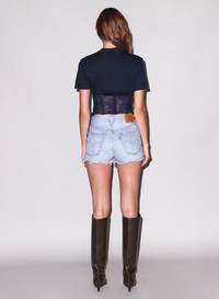 Our Sabrina Corset T-Shirt, cut from lightweight cotton with sporty mesh bottom panel. Features boning channels to sculpt and flatter your figure with side lace up detail for added edge. Invisible zipper to ensure proper fit. Pair with jeans or elevate your favorite pair or trousers. Materials & Care - Body: 100% Pima Cotton - Combo: 78% Polyamide & 22% Spandex - Dry clean only - SKU: TP0689-1071 Size & Fit - Model is 5'9 and wearing a size Small.