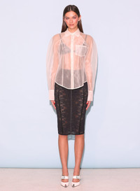 Sheer genius. Sheer silk organza button down top with puff sleeve. Take it out with the Le Stretch Lace Demi Bra and Pencil Skirt. Materials & Care - Body: 100% Silk - Dry clean - SKU: TP0598-0300 Size & Fit - Model is 5'11 and wearing a size S.