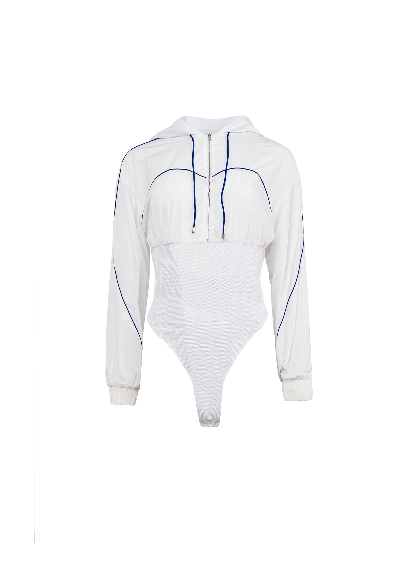 Get their hearts racing with the Trackstar Bodysuit, featuring nylon hooded top and relaxed long sleeves with breathable mesh body. Function front zipper, bottom snap closure and thong cut back. Take it out with the Denim Garter Skirt. Materials & Care - Body: 75% Nylon & 25% Polyester - Combo 1: 96% Polyester & 4% Spandex - Combo 2: 97% Polyester & 3% Spandex - Gusset: 100% Cotton - Machine wash cold with similar colors, cool iron if needed. Do not bleach, tumble dry or dry clean. - SKU: BS0489-1400 Size & Fit - Model is 5'11 and wearing a size Small.