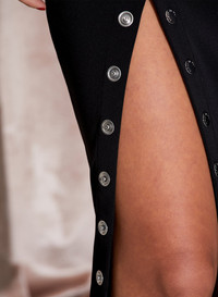 Keep things buttoned up or come undone in our chic Undo Me Dress. Luxe jersey hugs your body in all the right places, with silver snap buttons to show as little or as much leg as you want. Midi length, back zipper closure. Layer over your favorite Essentials panty for a chic look that will take you from happy hour to after hours. Sold out in your size? Check out the sleeveless version Materials & Care - 96% Polyester & 4% Spandex - Dry clean, or hand wash cold & lay flat to dry - SKU: DR0497-0100 Size & Fit - Model is 5'11 and wearing a size S.