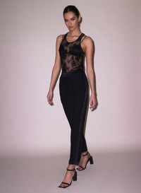Allover stretch lace tank with silk binding at neckline. Pair with the matching Bouquet Lace Boxer Brief, or take it out with the Tuxedo Pant. Materials & Care - Body: 78% Polyamide & 22% Elastane - Combo: 92% Silk & 8% Elastane - Dry clean, or hand wash cold and lay flat to dry. Do not soak. - SKU: TP0565-0100 Size & Fit - Dennis is 6'1 and wearing a size Medium. - Kiana is 5'11 and wearing a size Small.