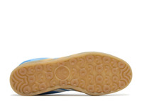The Bad Bunny x adidas Gazelle Indoor 'San Juan' nods to the sunny skies and beaches from the reggaeton artist's hometown. A vibrant shade of blue graces the leather upper, which includes a perforated toe box and an asymmetrical hairy suede forefoot overlay. A size label on the suede heel panel adorns the look, along with white leather three-stripes and a gold foil 'adidas San Juan' signoff right next to them. A gum rubber sole unit anchors the design. SKU: IF9734 Colorway: Supplier Color/Core White/Gum Release Date: 6/23/24