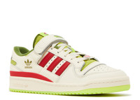 The Dr. Seuss x adidas Forum Low 'Cream White' honors the Grinch with an off-white leather upper, secured with an ankle strap and bolstered with crimson leather three-stripes. Green hairy suede accents make their way to the instep three-stripes and the tongue, which includes the Grinch's signature smirk. These shoes have a traditional rubber cupsole with off-white sidewalls and a bright green outsole. They also include a custom box, custom sockliners, a pair of colored laces, six extra lace jewels and an adidas-branded Christmas tree ornament. SKU: ID3512 Colorway: Cream White/Collegiate Red/Solar Slime Release Date: 12/1/23