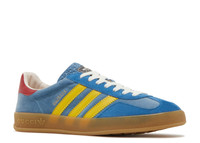 Designed in Italy, the Gucci x adidas Gazelle ‘Light Blue Suede’ taps into Alessandro Michele’s memories of the ‘80s and ‘90s. A powder blue velvet upper is touched with a matching suede forefoot overlay and contrasted by yellow serrated leather three-stripes. The red leather heel tab gets a Gucci Trefoil logo that nods to the partnership between the two brands. A partially see-through gum rubber cupsole completes the look. SKU: HQ8851 Colorway: Light Blue/Yellow/Red Release Date: 7/28/22