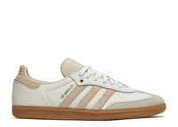 The LAFC x adidas Samba ‘Linen Gum’ celebrates the LA-based football club with an off-white leather upper, accented with a suede T-toe overlay and hairy suede on the serrated three-stripes and heel tab. A gold LAFC logo graces the tongue, while ‘Los Angeles’ is written in gold foil on the side panel. A gum rubber cupsole wraps up the look in style. SKU: GV8358 Colorway: Off White/Linen/Gum Release Date: 11/14/21