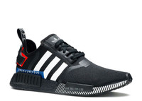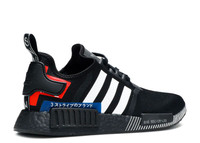 Part of the Japan series from April 2019, the NMD_R1 'Japan Colorblock' features prominent Japanese branding at the base of the heel. The upper is built with Core Black knit textile, contrasted by white Three-Stripes on the quarter panel and accented by red taping underneath the heel patch. A heel counter supports the fit, while underfoot, the Boost midsole includes white stripes at the forefoot. EVA plugs are included for breathability. SKU: EF1734 Colorway: Core Black/Cloud White/Lush Blue Release Date: 4/1/19