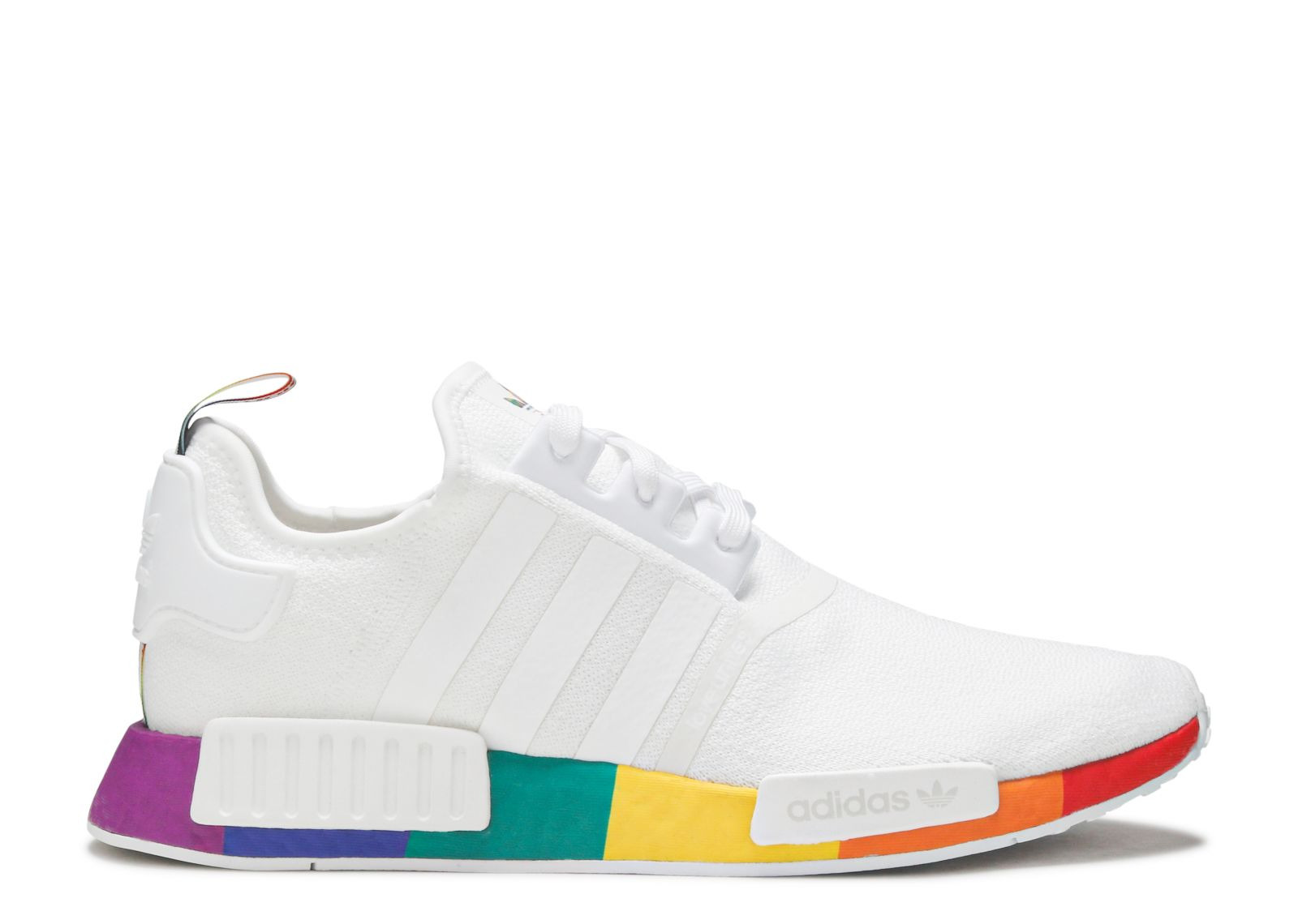 The NMD_R1 'Pride' released ahead of Pride Month 2020. As a result, the shoe's signature tooling sports a series of rainbow hues on its color-blocked design. White EVA plugs bolster the fit, with a rubber outsole providing traction. Up top, the shoe's textile construction is highlighted by accents on the tongue tag and heel pull-loop, which provides easy on and off. SKU: FY9024 Colorway: Cloud White/Cloud White/Cloud White Release Date: 5/1/20