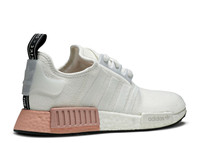 The NMD_R1 'Vapour Pink' brings a pastel look to adidas' NMD line. The shoe's knitted upper appears in Cloud White, with TPU Three-Stripes and covered seams reinforcing the build. A black heel pull-tab provides easy on and off as well as contrast, while underfoot, a Cloud White and Vapour Pink Boost midsole provides cushioning. EVA plugs provide stability, giving way to a black rubber outsole for traction. SKU: EE5109 Colorway: Cloud White/Cloud White/Vapour Pink Release Date: 8/1/19