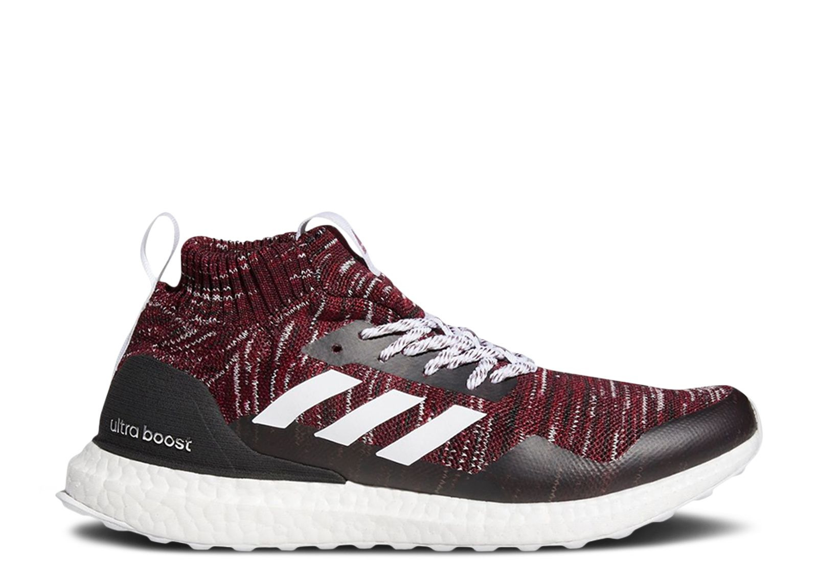 Drawing from Patrick Mahomes' college alma mater, the Patrick Mahomes x UltraBoost Mid 'Texas Tech' is a PE colorway for the Super Bowl and NFL MVP. The shoe's upper is built with Primeknit, finished in red, black and white, with white Three-Stripes on the quarter panel. Tongue and heel pull-loops provide easy on and off, while an external heel counter offers stability. Underfoot, a white full-length Boost midsole is included for cushioning. SKU: FZ5491 Release Date: 12/9/20