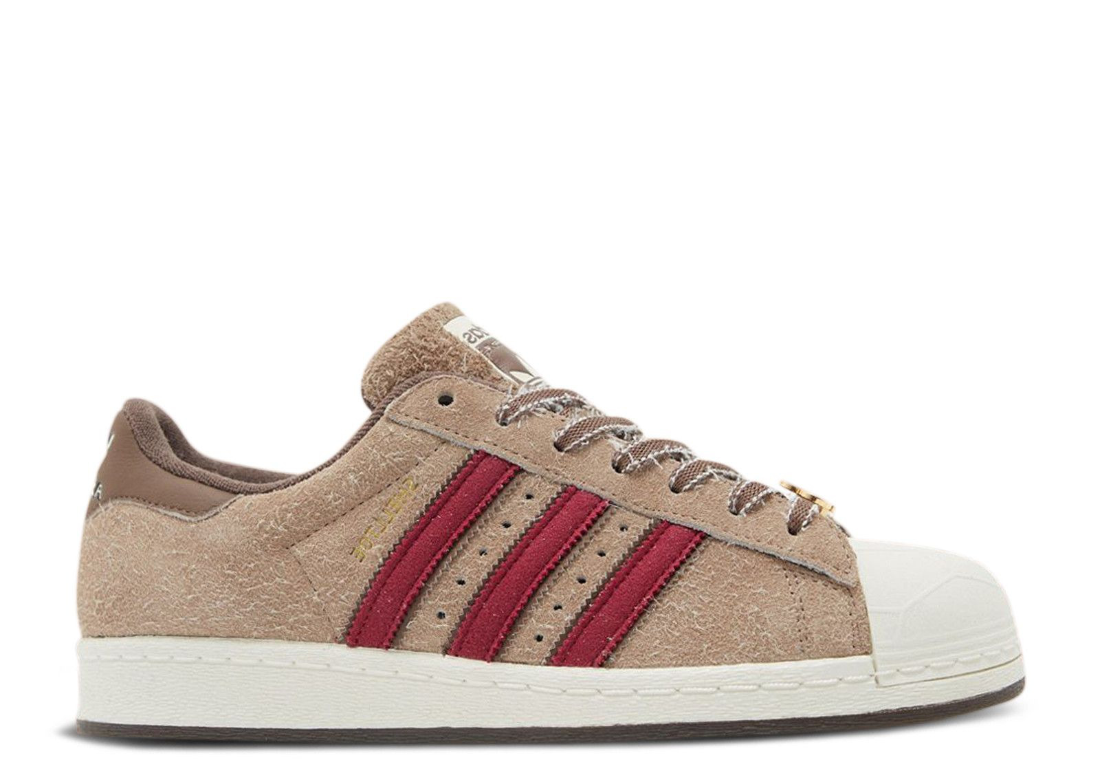 The Teenage Mutant Ninja Turtles x adidas Superstar Shelltoe 'Master Splinter' nods to the superhero team's rat sensei. Maroon suede three-stripes enliven the shaggy suede upper, which mimics the look and feel of Splinter's fur. A turtle-shell rubber toe cap and metallic gold shuriken lace jewels pay homage to the sensei's tools of war. Inside, a Master Splinter graphic wraps up this signature look. SKU: IH4767 Colorway: Clear Brown/Fuchsia Flash/Chalk White Release Date: 5/22/24
