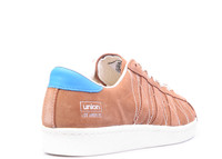 To mark the 10-year milestone of the project, adidas teamed up with five of its original Consortium partners to create the Superstar 80v. This version, crafted by UNION, a men's store based in Los Angeles, boasts an upper in Timber suede with a shell toe, contrasted by a striking blue leather heel tab. The Three-Stripes are decorated with jagged stitching, and the sneaker features a range of special details, including a commemorative insole design, a metallic heel emblem and lace aglets with the brand's logo. The shoe sits on a rubber cupsole for optimal support underfoot. SKU: B34079 Colorway: Timber/Timber/Cwhite