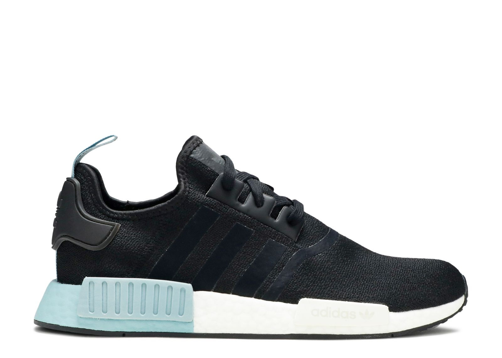 The Wmns NMD_R1 'Blue' brings a color-blocked look to its signature tooling. The shoe's black knit upper includes a tonal eyestay, heel patch and Three-Stripes branding, with the heel pull-loop in blue. Underfoot, the signature Boost midsole is split into white at the forefoot and midfoot, with blue at the heel. The same application appears on the stabilizing EVA plugs, with a black rubber outsole for traction. SKU: EE5178 Colorway: Core Black/Core Black/Ash Grey Release Date: 7/3/19