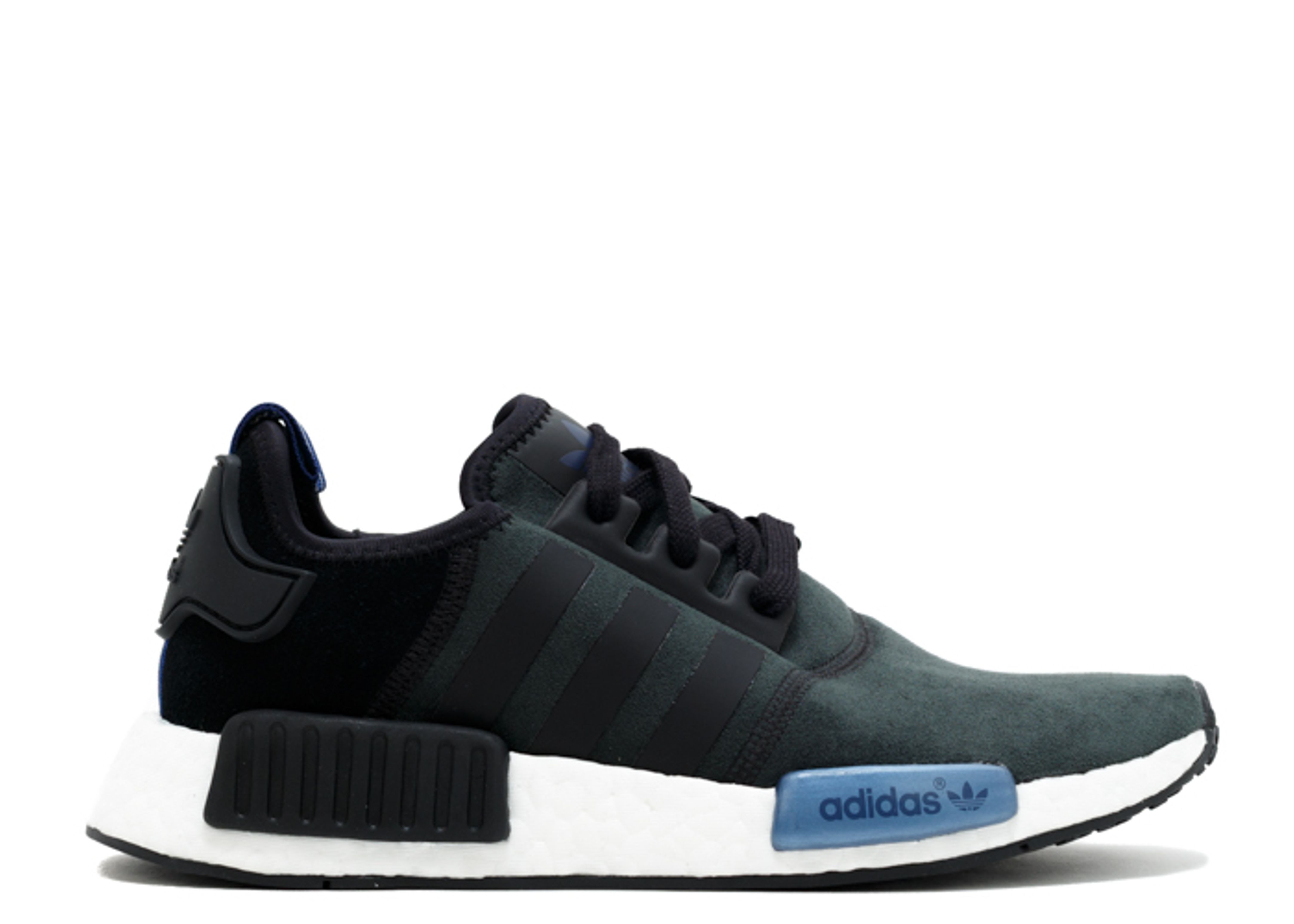 The Wmns NMD_R1 'Core Black' emerges with a simple colorway and updated material build. The shoe's usual knitted upper is instead built with a mix of suede and peached jersey, finished in black. The Three-Stripes and heel patch maintain the blue look, while the tongue tag and heel pull-loop add subtle color in Lush Ink. More Lush Ink emerges on the forefoot EVA plug, with a white Boost midsole for cushioning and contrast. SKU: S75230 Colorway: Core Black/Core Black/Lush Ink Release Date: 3/17/16